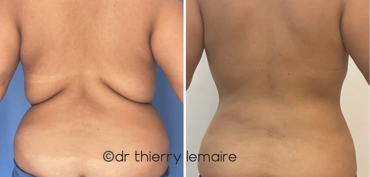 Photos avant et après lipoaspiration des hanches et du dos.